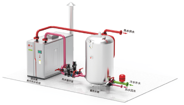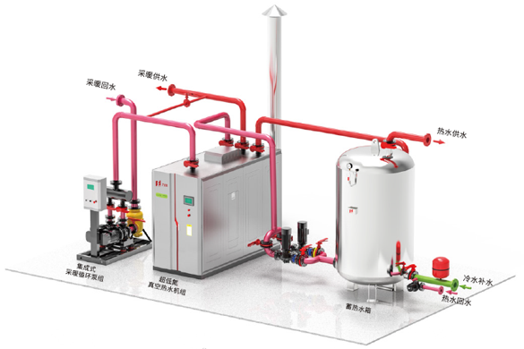 5001拉斯維加斯微壓相變熱水鍋爐主要由鍋爐本體和換熱器二部分組成,通過(guò)真空泵抽氣后形成一個(gè)密閉腔。運(yùn)行時(shí),密閉腔(鍋)內(nèi)工作壓力微正壓(不大于0.1MPa),熱媒水充注在密閉腔(鍋)內(nèi),燃料燃燒后傳熱給熱媒水,熱媒水吸熱后沸騰蒸發(fā)變成蒸汽,蒸汽上升到換熱器管外遇冷凝結(jié)放熱將熱量傳遞給上部換熱器內(nèi)流過(guò)的系統(tǒng)水,系統(tǒng)水溫度升高(供水溫度≤110℃)、輸出供熱。